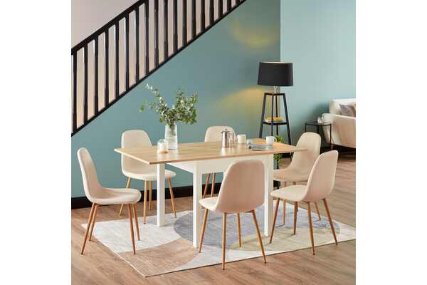 Find the perfect dining companion in our Patton extending dining table. Modern design meets country charm with Patton's contemporary two-tone finish paired with its oak effect table top.You can double your dining space in an instance by flipping the top over; taking this table from a 4 to a 6-seater. Scale down for cosier dinners and extend out for that big Sunday lunch.