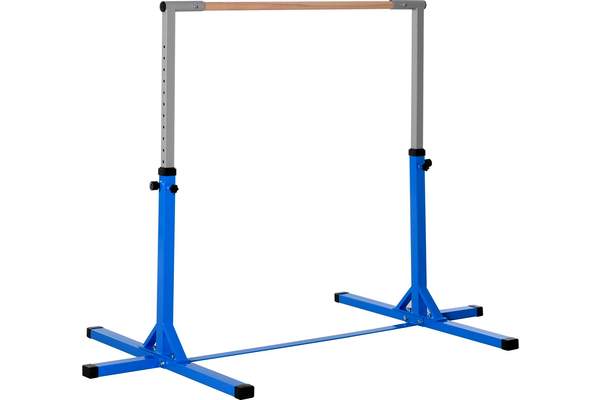 This Jouet gymnastics horizontal bar will be your best choice for your kids practice at home, office or at gym. Rubber-wrapped base corners protect your floors from scratches with extra support made the sit more stable and safety use. Try this gymnastic horizontal bar present the best gift for your young kids to improve flexibility, strength, and overall health. Features and Benefits High-Quality Materials - Made of strong and durable steel tube with power coated process and solid beechwood for long-term use. Height Adjustable - The gymnastics horizontal bar height adjustment of 11 gears, spacing between each gears is 5cm, minimum height 95cm suitable for different ages kid. Stable Base - Rubber-wrapped base corners protect your floors from scratches with extra support made the sit more stable and safety use. Easy Installation - With a clear assembly instruction can put all together and disassembled in just minutes, which is convenient transport and stroage. Note: Do not put the mat under the foot stand, use in the middle of the stand to prevent falling down. Specifications The height can be adjustable of 11 gears Non-slip rubber wrapped base corner for safety Easy to installation in just minutes Strong and durable steel tube with power coated Self-assembly Age: 3+ recommended with Adult Supervision Weight Capacity: 75 kg Material: Steel, Beechwood Weight: 27 kg Frame Spacing: 122 cm Beechwood Length: 125 cm Overall Dimensions: 197 W x 121 D x 95-145 H cm Colour: Blue